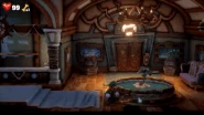 With a swashbuckle aesthetic running all the way through, this floor is mostly a large dining area, with the elevator hall being a small bar, the Grotto Lounge a large sitter dining room, and the beach an outdoor diner aboard a pirate ship. The elevator hall is a standard linear room leading to the other rooms. There is paintings of islands and pirate monsters framed, and a large ship blocking the door to the Grotto Lounge, which Luigi needs the special addition to the Poltergust G-00 to destroy in the Boilerworks. The Grotto Lounge is a large restaurant situated in a giant carved out cave, which there is many waterfalls flowing through. The Beach is where the ship is located on the water. The room is an enormous dome with a painted background to give the illusion it is outside.