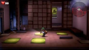 If Luigi approaches south from the west area, he will start climbing some hidden stairs, also visibles in the mirror, which will lead to this level. Now that the player has discovered this part of the room, the camera will be repositioned to show it in full view, leaving the opportunity to explore it freely.
