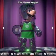 In the ScareScraper Mode of Luigi's Mansion: Dark Moon, the distinctive outfit that Luigi normally wears will have four new color palettes, included a new green variation of the original one, where the overalls will also be recolored in a green shade instead of blue.