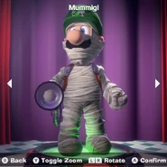A costume available in the Multiplayer Pack DLC Part 1, based in a mummy and also a reference to the 10F - Tomb Suites floor of the hotel. The name is pun and combination of the word "Mummy" and the name "Luigi".