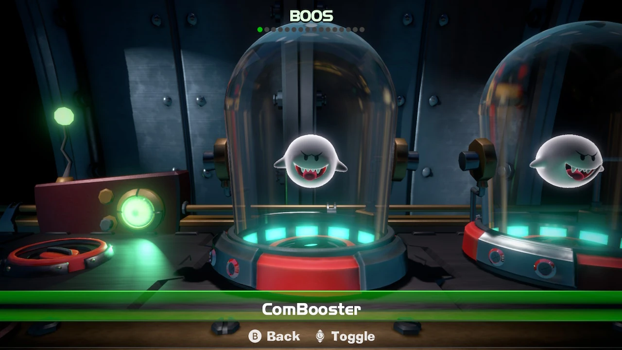 - ComBooster, Boofuddler and Booccaneer are the only Boos that have a different dialogue intro in the part where they reveal their names when found or not found.