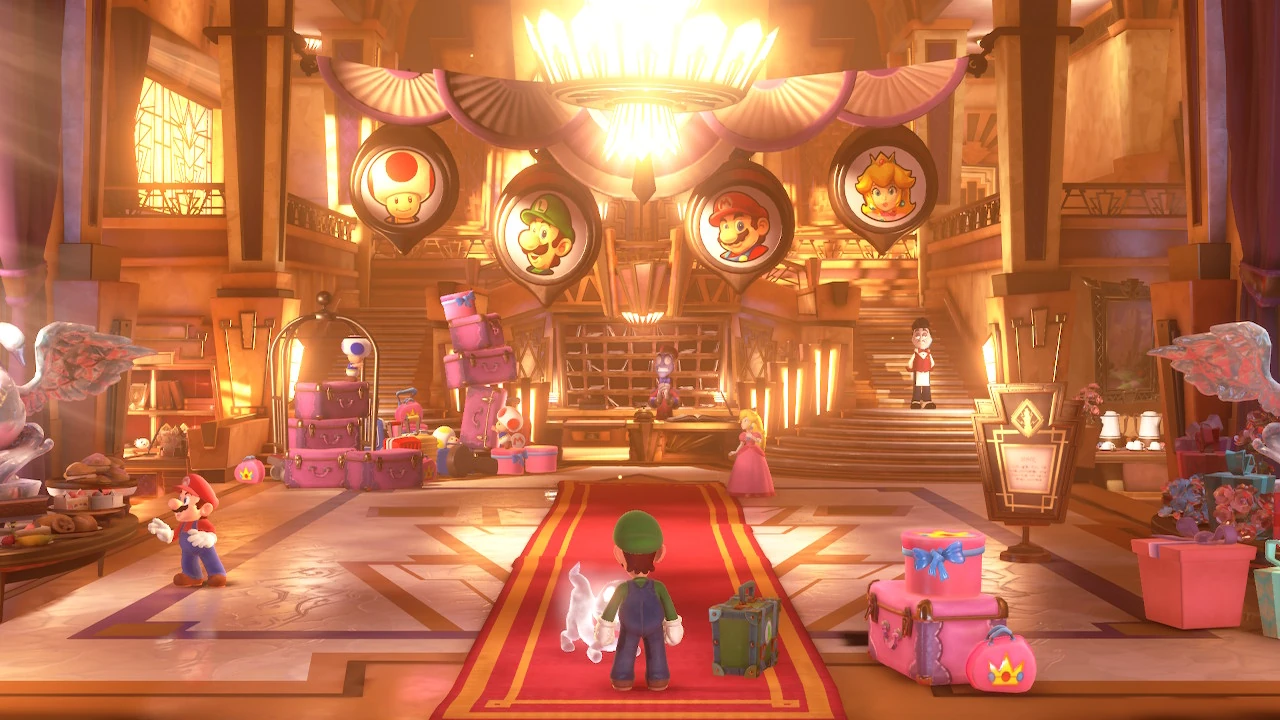 1F - Grand Lobby is the first floor encountered in Luigi's Mansion 3 inside the The Last Resort. Unlike other floors, it only consists of one room, but that doesn't stop it from being incredibly detailed. In fact, it is one of the only floors with light and dark forms. Even if it is only one room it still has 6 gems along with one Boo.