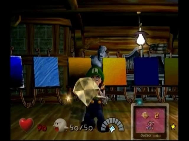 Luigi is the younger brother of Mario and the main protagonist of Luigi's Mansion. He first won a mansion in a contest he did not even enter, though he still got put up with it. He told his older brother, Mario to have a celebration at that mansion. When Luigi entered the mansion, he found out that Mario wasn't there. He got help from an old man named Professor Elvin Gadd (or just Professor E. Gadd) to rescue Mario. He had to rescue Mario using two inventions, the Poltergust 3000, and the Game Boy Horror. He got to the Training Room to test his skills using the Poltergust 3000. After he completed his training, Professor E. Gadd asked him where he wanted to go. By then, he's ready to find Mario!