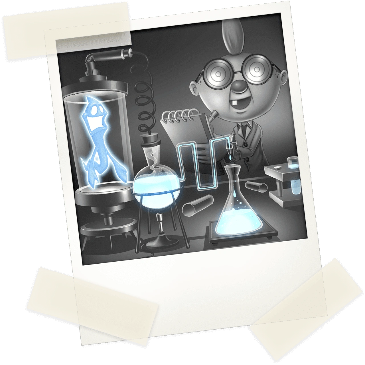 Ghosts: spirits that dwell in the darkness and take great joy in scaring humans. Some of these ghosts have grown attached to me, and I've noticed (and collected!) a strange liquid energy from them. I'm certain this liquid is the key to many, many new inventions!
