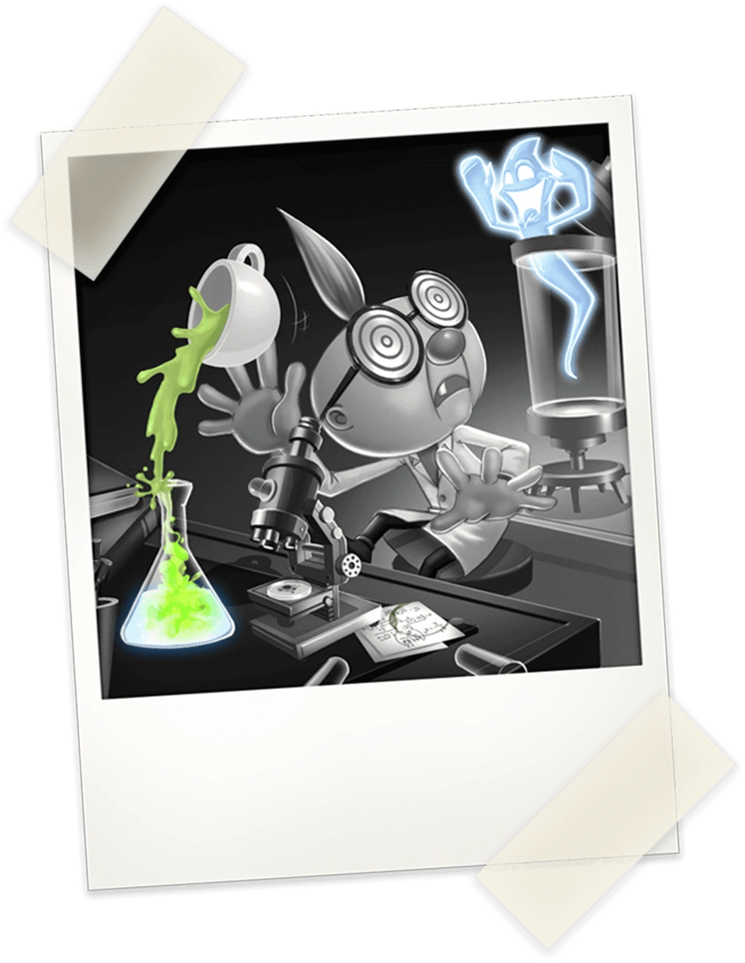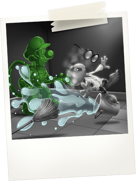 This mysterious element I've come to call Goo has proven unlike any other element I know of. I'm confident that I can make great strides in my research if I can teach Goo to collect ghost for me! My greatest invention, the Poltergust, is undeniably the best way to capture ghosts. I realized that Goo could learn to master the Poltergust if only I could cause it to adopt a humanoid form. The experiments began at once!