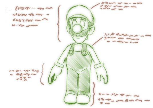 - Another doodle of Gooigi is named "Luigi-notes.png" instead, probably mistaking one character with the other.
