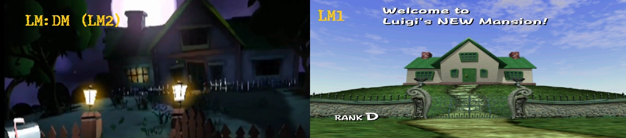 A comparison between the Rank D mansion and Luigi's home in Luigi's Mansion: Dark Moon